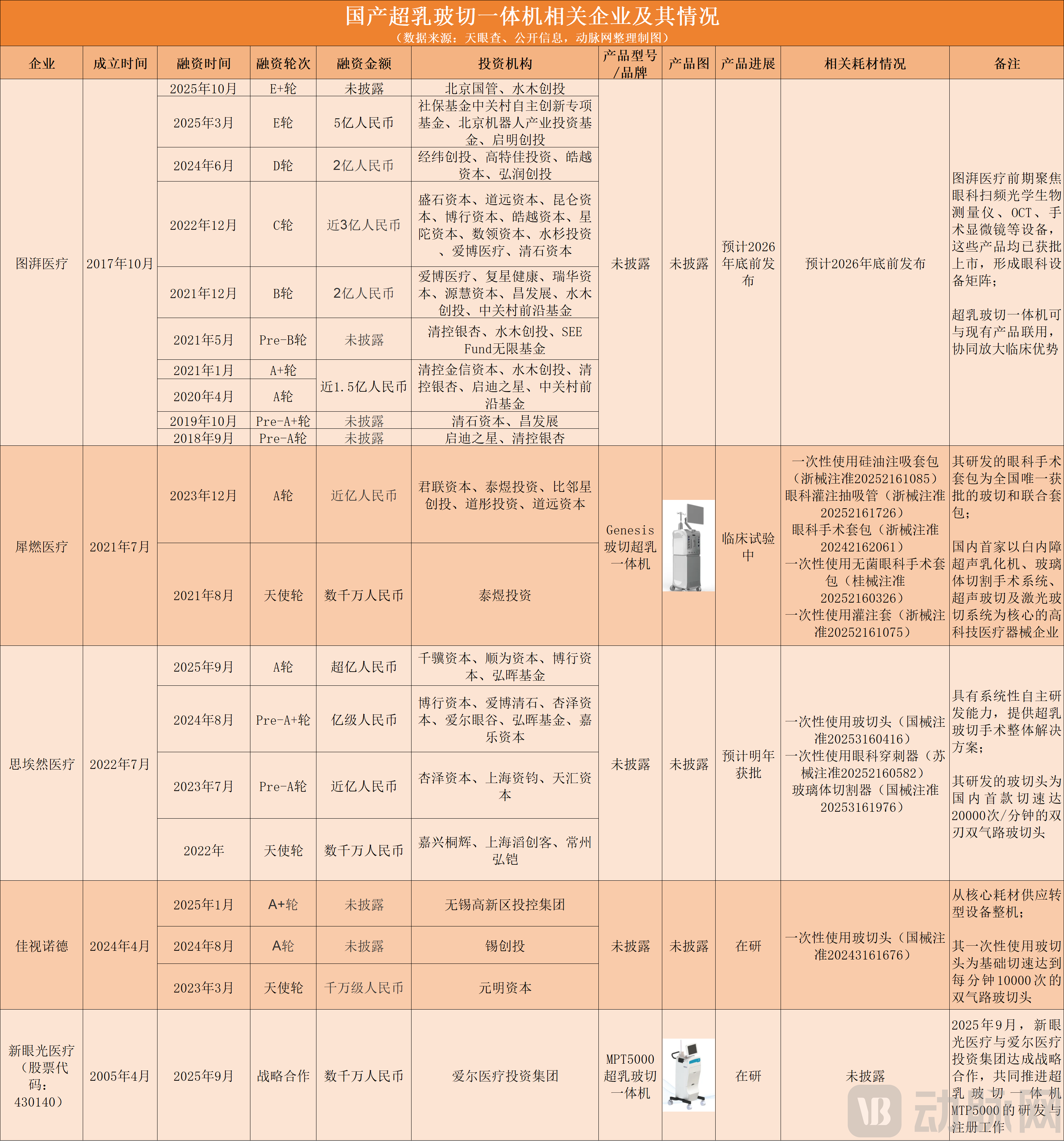 Based on public disclosures, VCBeat has mapped the key players and products currently developing combined phaco-vitrectomy systems in China: