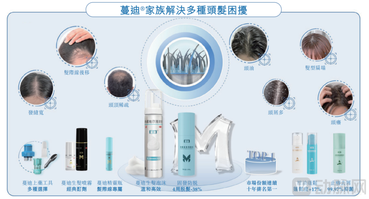 On the product front, Mandi has closely addressed real user pain points with nearly every iteration. In 2001, it launched a 5% minoxidil tincture, filling a critical market void. In 2018, the application of phosphate-buffered saline (PBS) formulation technology solved the industry-wide challenge of room-temperature storage stability. In 2024, it introduced China's first and only approved minoxidil foam. Utilizing a foam-based formulation for enhanced topical delivery, which improves efficacy and reduces skin irritation, the product saw first-year sales surpass 2.5 million units, generating over RMB 300 million in revenue. This launch also expanded the user base from diagnosed patients to younger demographics with sensitive or oily scalps and general appearance-conscious consumers, significantly broadening the brand's market penetration.