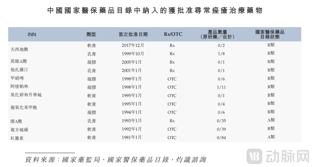 List of Approved Drugs for the Treatment of Common Acne Included in China's National Medical Insurance Drug Catalog