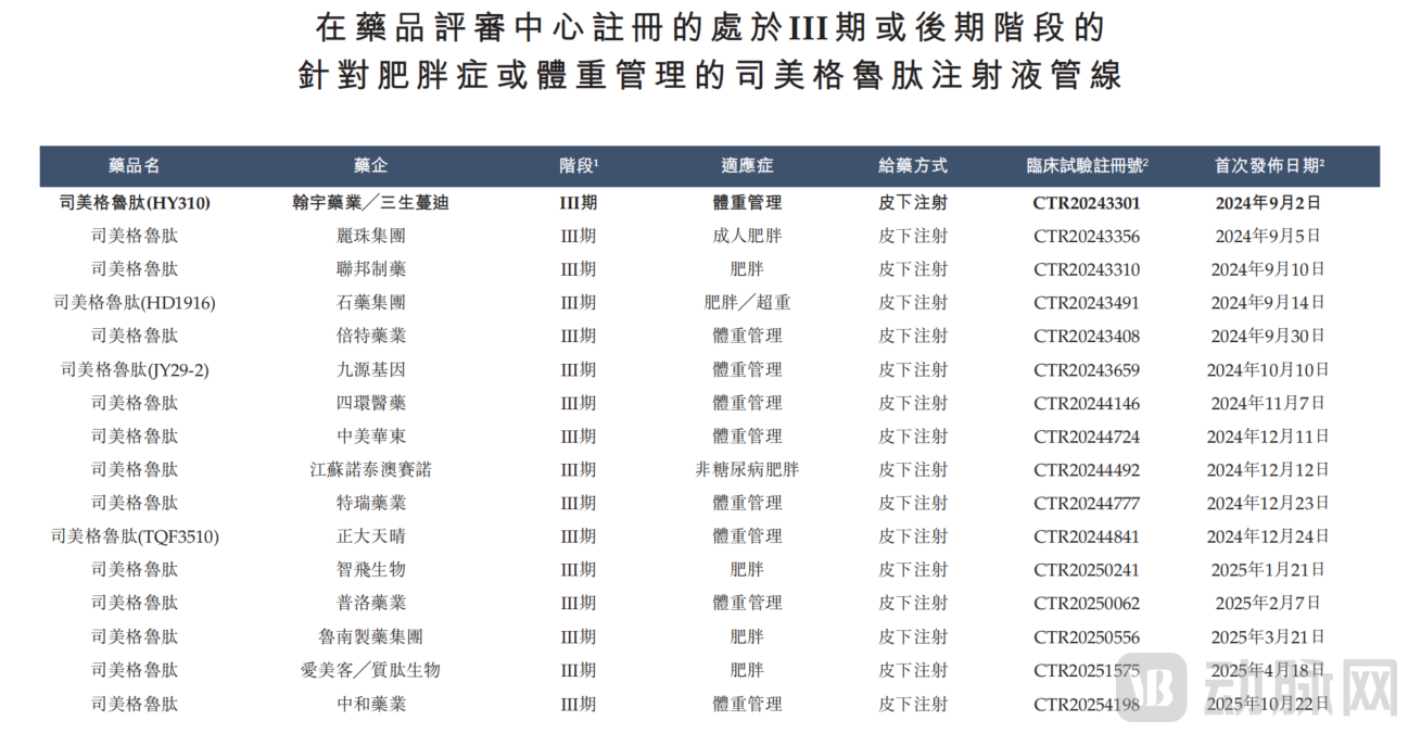 Phase III and Later Stage Semaglutide Injection Registered with China's Center for Drug Evaluation (Pipeline List for Obesity/Weight Management Indications)