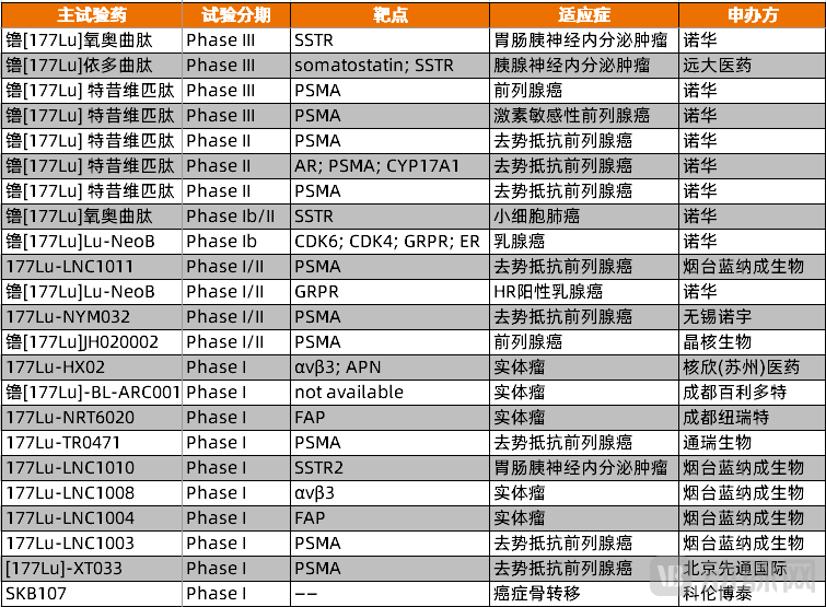 Figure 3. Lutetium-177 innovative drug products currently advancing in clinical trials in China(Source: PharmaCube, VCBeat)
